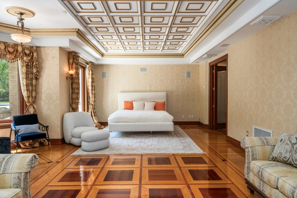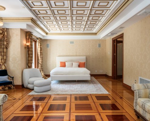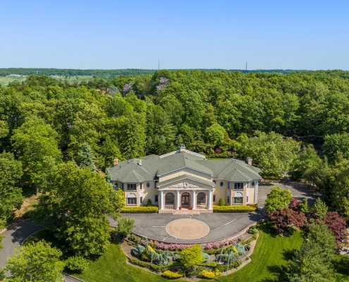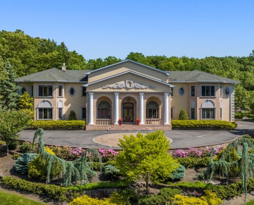 Nestled in the prestigious Essex Fells, this stunning Greek Revival home exquisite living space on 1.7 acres of meticulously manicured grounds. Perched high atop a hill, this residence exudes classic elegance with a touch of modern luxury. Step inside to discover an inviting atmosphere of timeless beauty and over the top craftsmanship. The home’s interior features coffered ceilings, elaborate gold leaf trim, and tray ceilings. Entertain guests in the two-story dining room or host grand events in the banquet hall, which boasts a built-in custom bar, marble fireplace and double French doors leading to the covered patio. The gourmet kitchen is equipped with top-of-the-line appliances, tray ceilings, marble floors, wine fridge, Meile coffee machine all designed for culinary excellence. The 1st floor also features an office w/ custom built-in, a second primary bedroom, guest bedroom and 2 powder rooms. The grand double-wide staircase, adorned with custom railings, leads to the second floor, where you’ll find hardwood floors throughout. Each of the generously sized BR is equipped with an en-suite bath, providing privacy and convenience for all. The primary BR is a true sanctuary, complete with 4 walk-in closets, a sitting area, and a luxurious bathroom w/ steam room. Outdoor amenities inc. a private tennis court, an in-ground pool w/large hot tub and updated pool house. This masterpiece offers a rare opportunity to own a piece of architectural history.